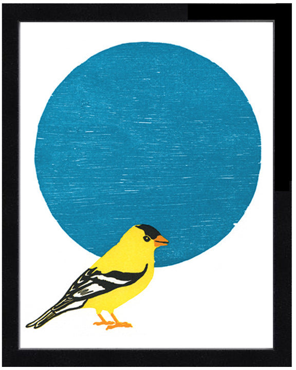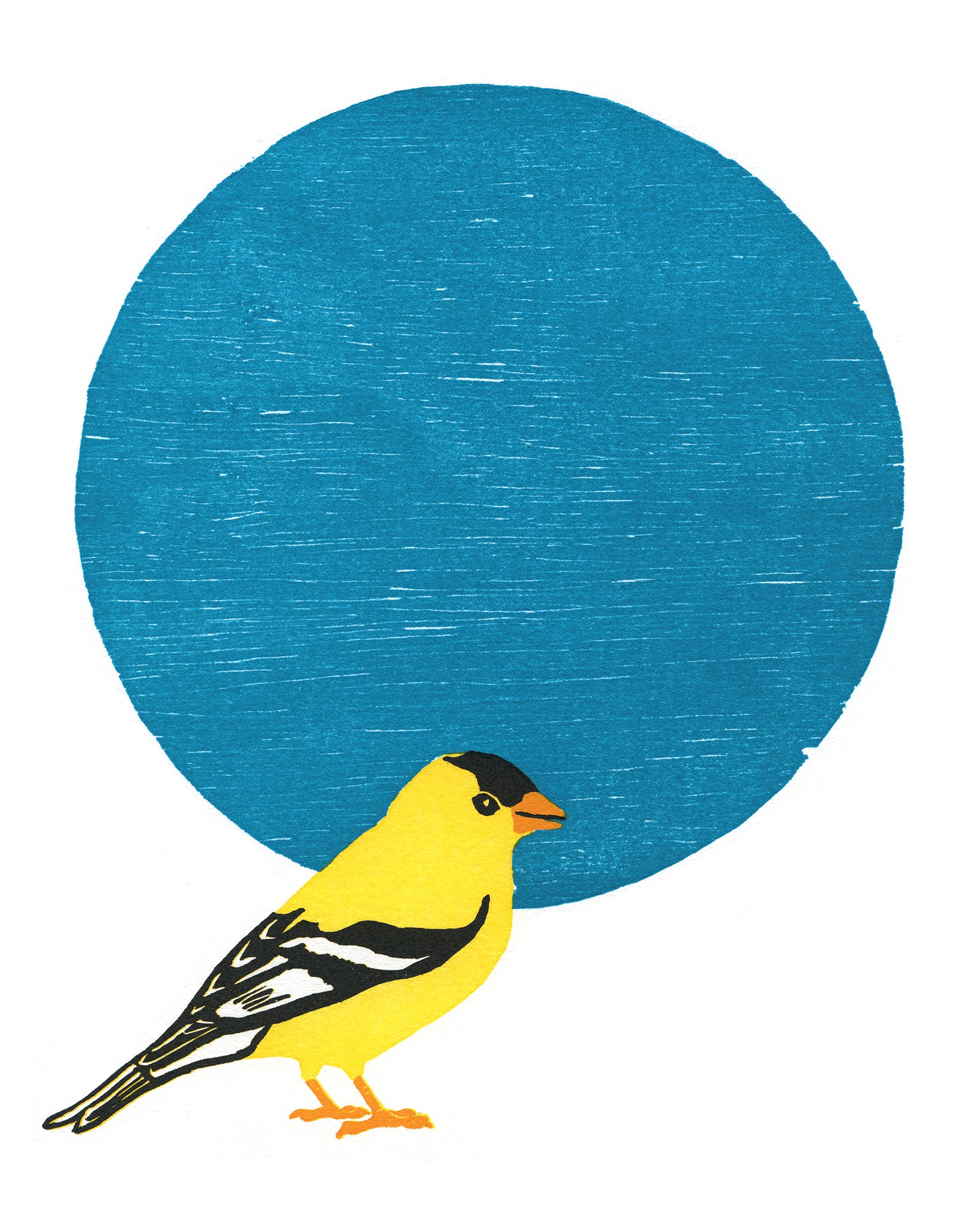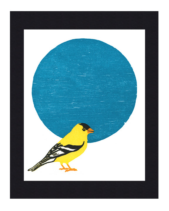 This four color print on lush, 100% cotton paper was created from one wood block for the background, and a three color reduction cut linoleum blocks for the bird. Reduction cuts are made by carving into the same piece of linoleum, thereby destroying the block as it is printed. That means there is no going back and reprinting the image!