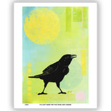 My love affair with Crows continues with this monotype series. I am endlessly fascinated with these intelligent, social birds. I'm lucky to have a few that hang out in my neighborhood. I often see them hanging out on my neighbor's roof while I'm working in my gardens- I like to think they're keeping an eye out for me.