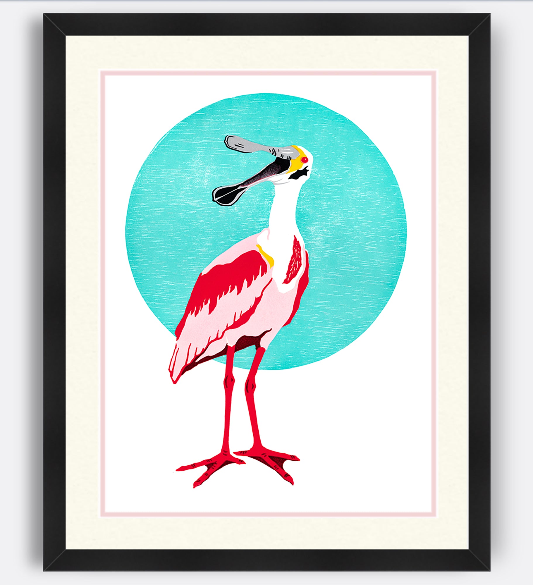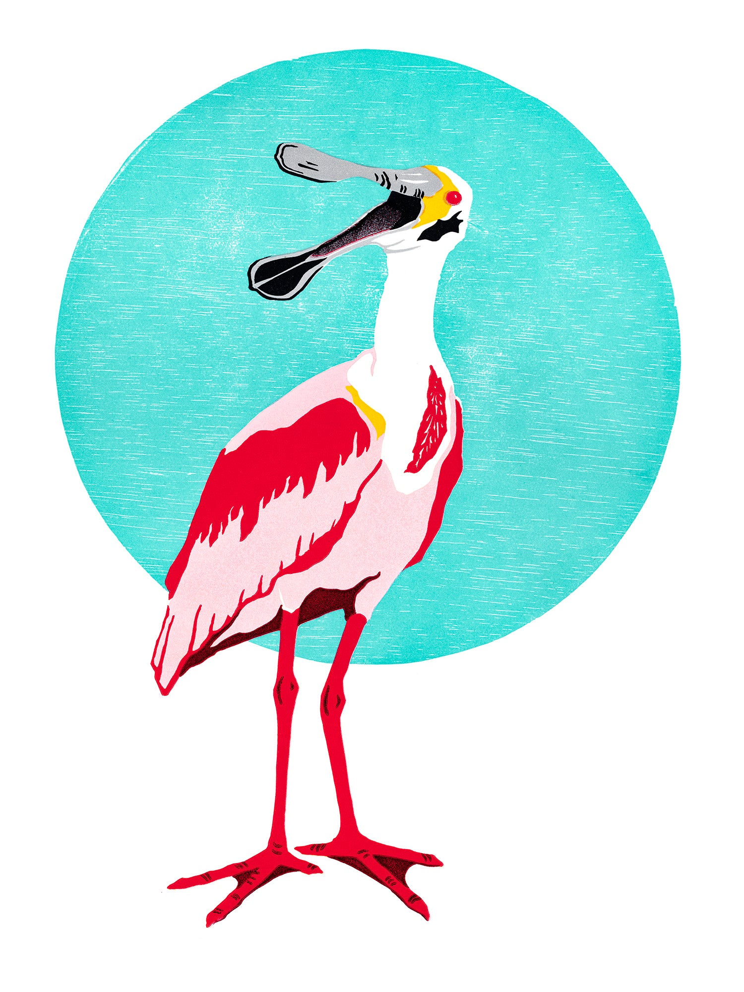 Roseate Spoonbill • Letterpress and Linocut Print