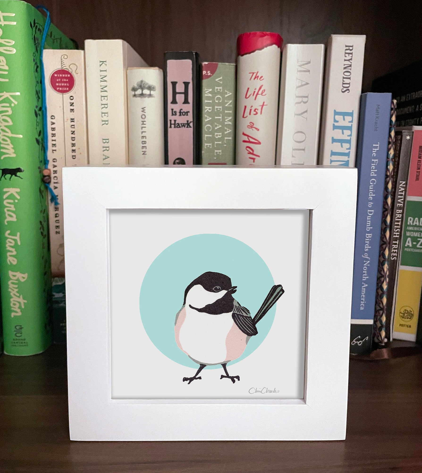 CHICKADEE Framed Mini Bird Reproduction 4"x4"