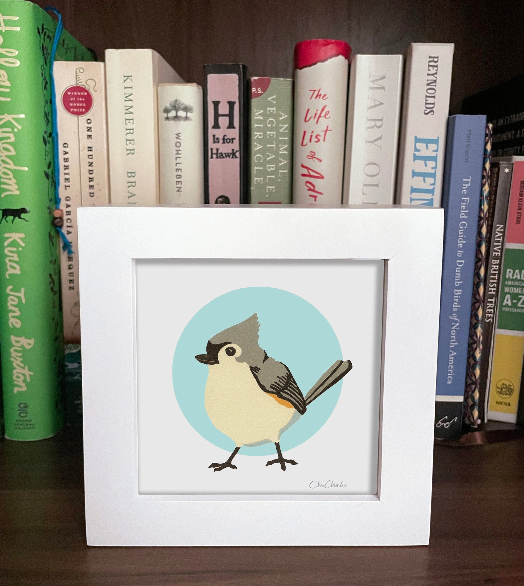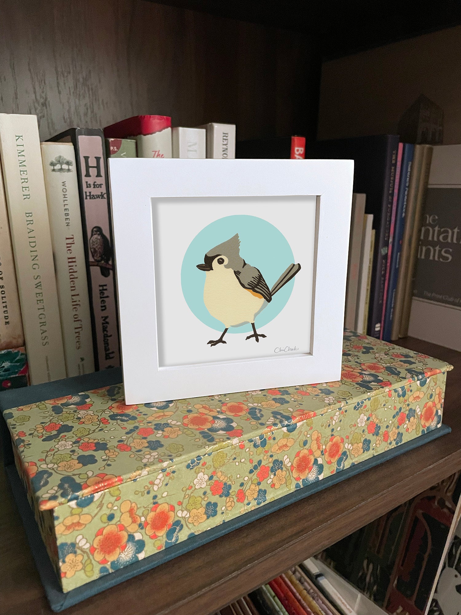 TUFTED TITMOUSE Framed Mini Bird Reproduction 4"x4"