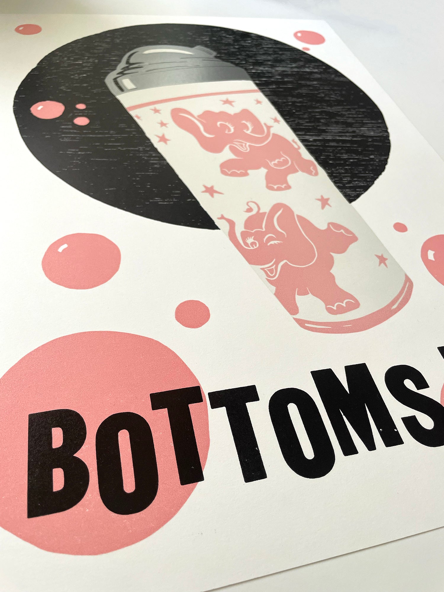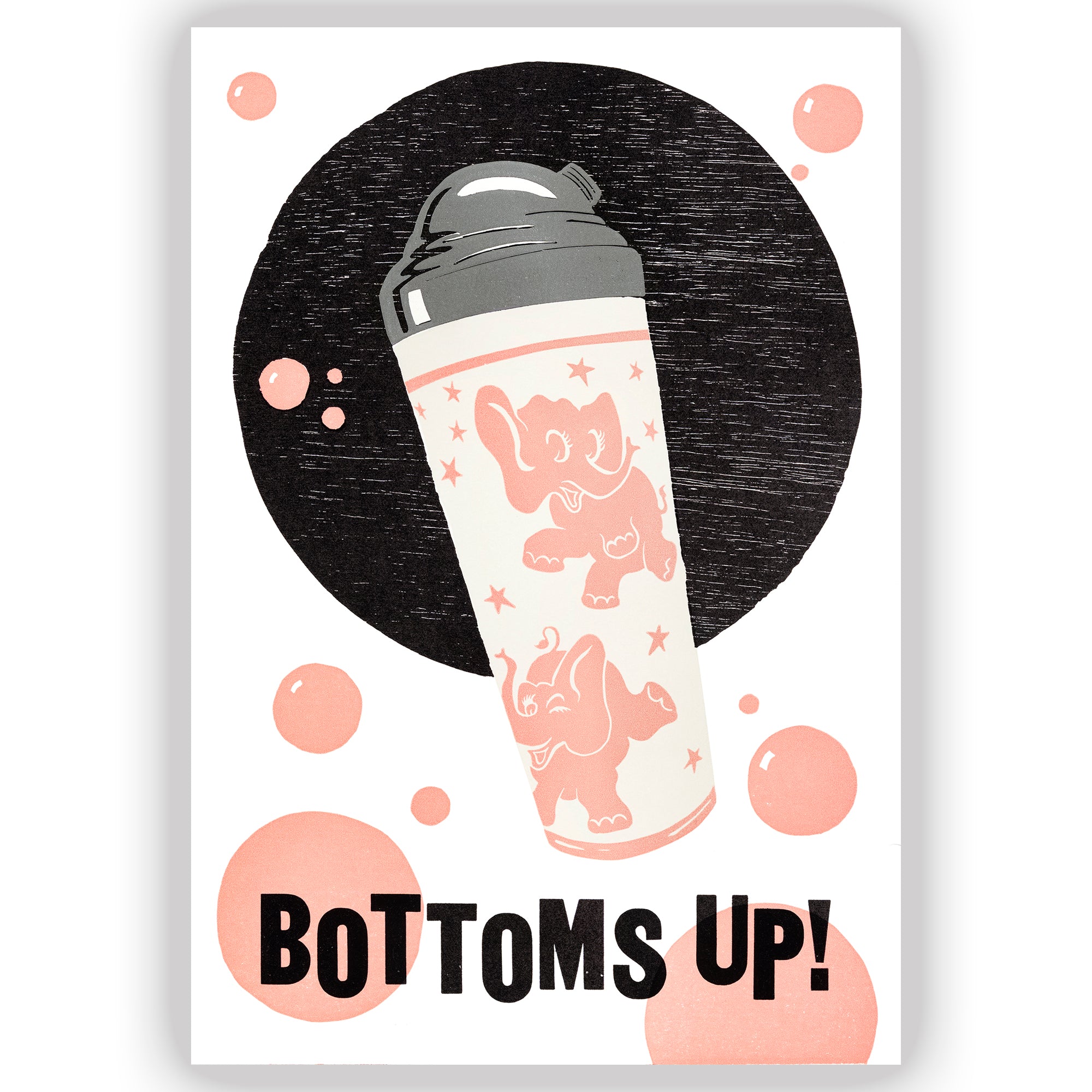 Bottoms Up! *NEW* Letterpress and linocut Fine Art Print